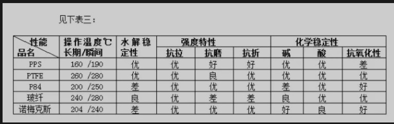 根据表三,就应对化学腐蚀影响,电厂常用的相关滤料材质,PTFE 优于PPS和P84。